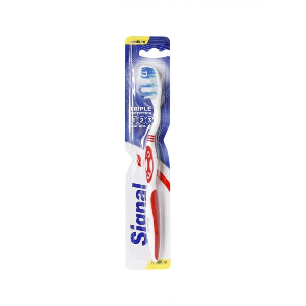 با داشتن مسواک مدل عملکرد سه گانه با برس متوسط سیگنال یک روتین کامل برای مراقبت و محافظت از سلامت دندان های ارزشمند خود خواهید داشت.این مسواک با داشتن برس با سختی متوسط دارای عملکرد مبارزه با پوسیدگی، سفید کردن دندان ها و از بین برنده بوی نامطبوع دهان است.از ویژگی های بارز این مسواک سیگنال این است که پد تمیز کننده زبان دارد به همین دلیل به صورت موثرتری در از بین بردن باکتری های دهان نقش دارد.