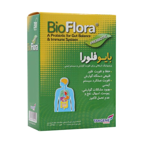کپسول بایوفلورا تک ژن فارما یک نوع پروبیوتیک مفید برای سلامت انسانها است. این محصول اگر به اندازه کافی و به صورت مستمر استفاده شود سبب سلامت عمومی بدن و کاهش PH دستگاه گوارش میشود. مصرف مکمل بایو فلورا تکژن فارما با مراقبت از دستگاه گوارش بهبود مشکلاتی از جمله عدم تحمل لاکتوز، یبوست، اسهال و آلرژیهای غذایی را به دنبال دارد. همچنین باعث حفظ و تقویت فلور طبیعی دستگاه گوارش میشود. روده انسان حاوی تعداد بیشماری از انواع باکتریهای مفید، مضر و خنثی است که توازن دارند. در غیر این صورت موجب مختل شدن وظایف فلور روده شده که منجر به بیماریهایی نظیر آلرژیهای غذایی، سر درد، افسردگی، آکنه و … خواهد شد. اما مصرف این فراورده از تک ژن فارما این توازن را حفظ کرده و اثرات بسیار موثری بر سلامت میزبان دارد. بهترین جایگزین این محصول ژری لاکت است.